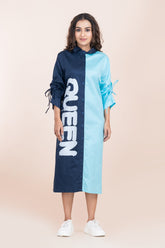 QUEEN DUAL COLOUR LONG DRESSVendor: WikkiwikkiPRODUCT DESCRIPTION :- FABRIC: PURE COTTON COLOUR: NAVY BLUE & SKY BLUE NECK TYPE: SHIRT COLLAR SLEEVE: LONG STRING SLEEVE LENGTH: BELOW KNEE PATTERN: DIGITAL PRINTED FIT: REGULAR FIT OCCASION: CASUAL & PARTY WEAR SIZE: Model is wearing 40 MODEL HEIGHT: 5.7 FEET WASH CARE:...