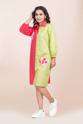 LUCKY ME! - DUAL COLOUR DRESSVendor: WikkiwikkiPRODUCT DESCRIPTION :- FABRIC: PURE COTTON COLOUR: PINK & NEON GREEN NECK TYPE: SHIRT COLLAR SLEEVE: ELASTIC SLEEVS LENGTH: BELOW KNEE PATTERN: DIGITAL PRINTED FIT: REGULAR FIT OCCASION: CASUAL & PARTY WEAR SIZE: Model is wearing 40 MODEL HEIGHT: 5.7 FEET WASH CARE: COLD MACHINE WASH...