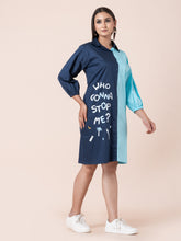 WHO GONNA STOP ME?-LONG DRESSVendor: WikkiwikkiPRODUCT DESCRIPTION :- FABRIC: PURE COTTON COLOUR: NAVY BLUE & SKY BLUE NECK TYPE: SHIRT COLLAR SLEEVE: ELASTIC SLEEVS LENGTH: ABOVE & BELOW (CUSTOMIZED) PATTERN: DIGITAL PRINTED FIT: REGULAR FIT OCCASION: CASUAL & PARTY WEAR SIZE: Model is wearing 40 MODEL HEIGHT: 5.7 FEET WASH CARE: COLD MACHINE...
